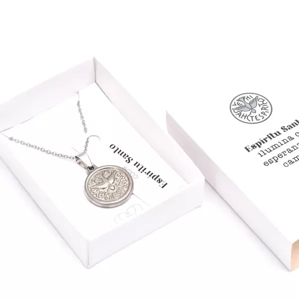 Collar de acero de cadena fina y dije del Espíritu Santo. 🎁Este producto es ideal para regalar en Bautismos y Confirmaciones.
