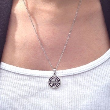 Conjunto de cadena y medalla de San Benito, todo en acero quirúrgico. Es un modelo clásico y unisex.