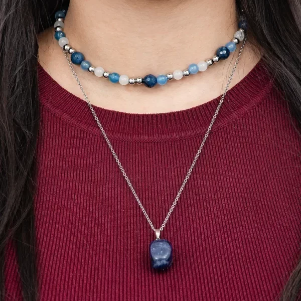 Combo de dos collares con piedra sodalita. Uno con cadena y dije, el otro con cuentas combinadas.