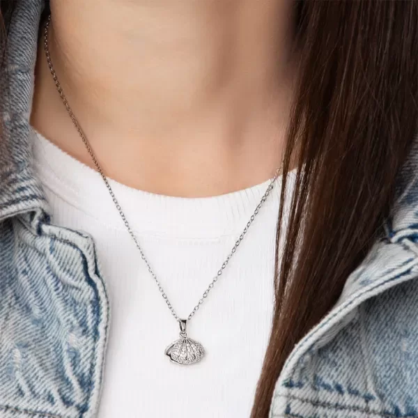 Collar de cadena de acero ultra fina, con dije de caracol con circonias incrustadas, que se abre y adentro tiene una perla. Es un collar espectacular, hermoso y delicado, perfecto para que te acompañe a diario.