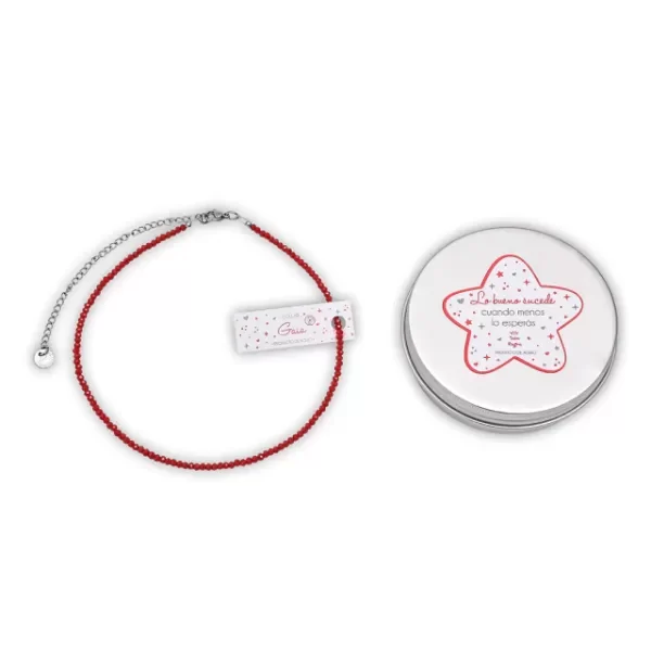 Este hermoso collar de cristales facetados muy pequeños es el accesorio ideal para darle un toque especial a cualquier look. Su diseño delicado y brillante lo convierte en una pieza elegante, perfecta tanto para ocasiones especiales como para agregar un toque glamoroso a tu día a día. Además, viene en una lata, adornada con un sticker especialmente diseñado, lo que lo convierte en el regalo perfecto o en un hermoso envase para reutilizar. ¡El packaging también brilla por su originalidad! ✨