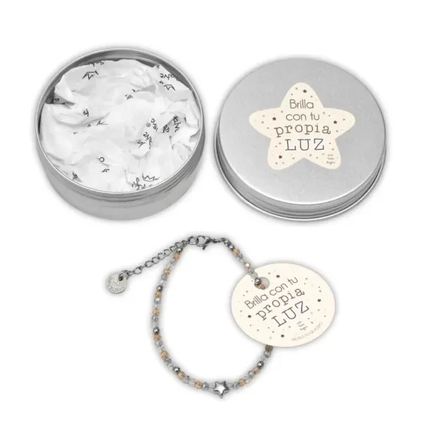 Esta delicada pulsera de acero y cristales facetados, acompañada de un dije de estrella, es el accesorio perfecto para añadir un toque de elegancia a cualquier estilo. Con su diseño único y sofisticado, se adapta a diferentes ocasiones. Viene presentada en una lata reutilizable con un sticker especialmente pensado para sorprender a esa persona muy querida. ¡El regalo ideal para un detalle lleno de brillo y cariño! ✨