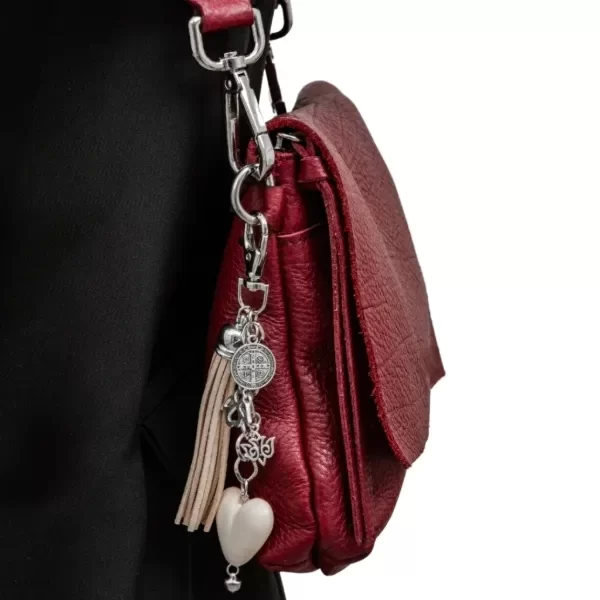 Bendición ideal para regalar! Es un producto súper versatil. Se puede usar como llavero, para colgar de una cartera o mochila. Es genial si tenes que hacer varios presentes, podes llevar de distintos colores. Esta bendición siempre trae un gancho, con dijes de Espíritu Santo, Ángel de la Guarda y San Benito, además de un dije de acrílico que puede variar. Incluye: Bendición + Envase reutilizable con una hermosa tarjeta♥ Material: Gamuza, aleación de metales, dije acrílico. Medida: 15 cm. aproximadamente.